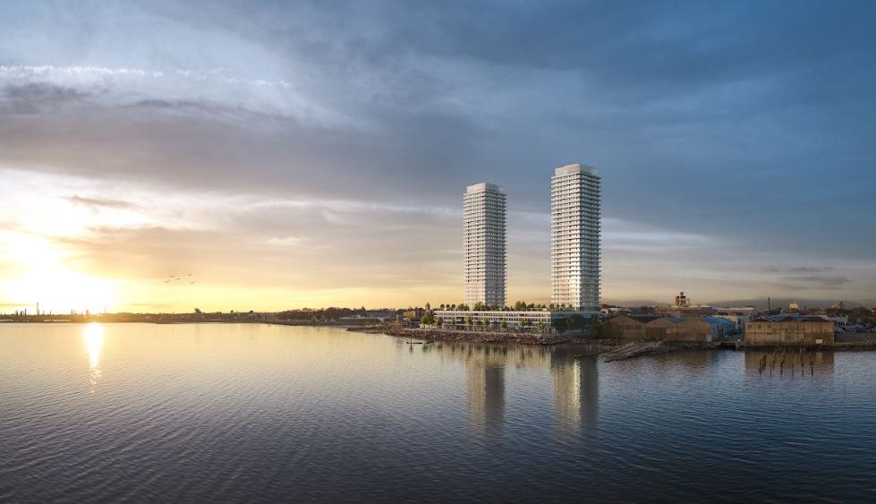 El predio está conformado por dos manzanas a orillas de la bahía con una superficie de 12.000 m2, cubiertas por un amplio basamento de 4 pisos que sirve de apoyo para las dos imponentes torres de 34 pisos. En la planta baja se encontrarán distintas actividades comerciales de uso cotidiano, fundamentalmente locales comerciales, supermercado, así como un área en el borde costero apropiada para los emprendimientos gastronómicos. El basamento, que en su interior contendrá más de 500 garajes y un cinturón de apartamentos frentistas a la Bahía y calles laterales, tendrá en su parte superior una imponente explanada a cielo abierto de aproximadamente 6.000 m2. Dicho espacio será de acceso restringido a la copropiedad y dispondrá de abundante verde, pérgolas, lugares de descanso, cancha multiuso, circuito aeróbico, juegos para niños y espectaculares vistas panorámicas.